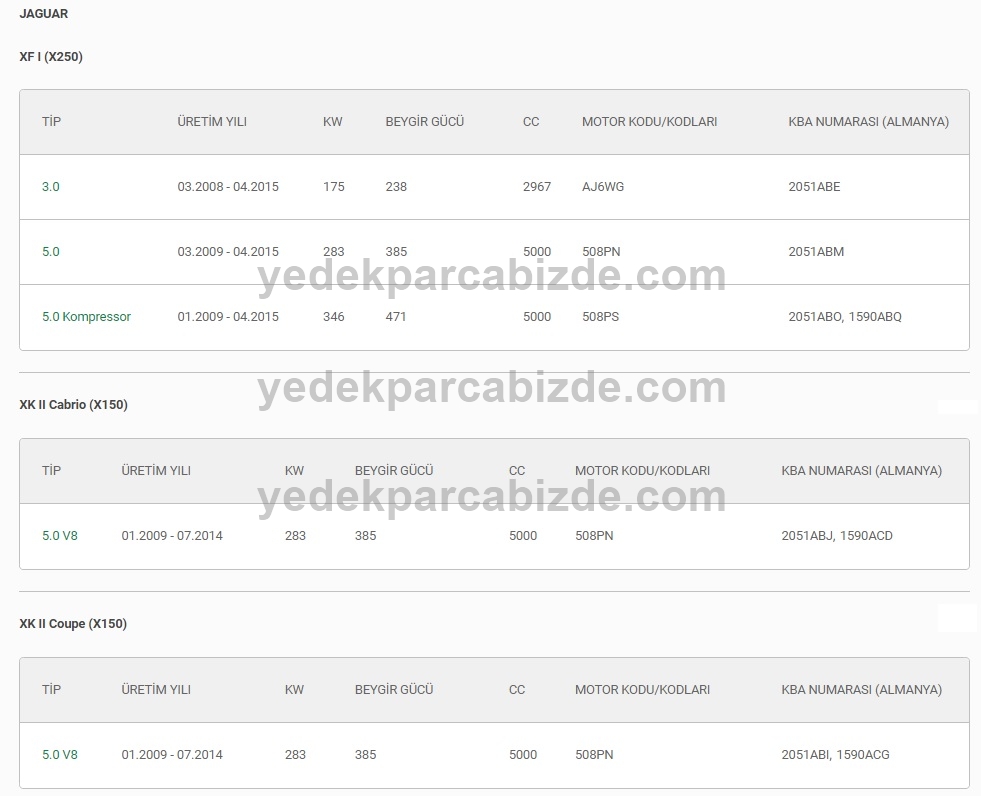 | UYUMLU OLDUĞU ARAÇLAR | XF / XK II |