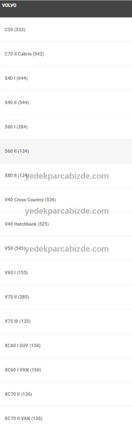 | UYUMLU OLDUĞU ARAÇLAR | C30 / S40 / S60 / S80 / C70 / V40 / V50 / V60 / XC60 / XC70 |